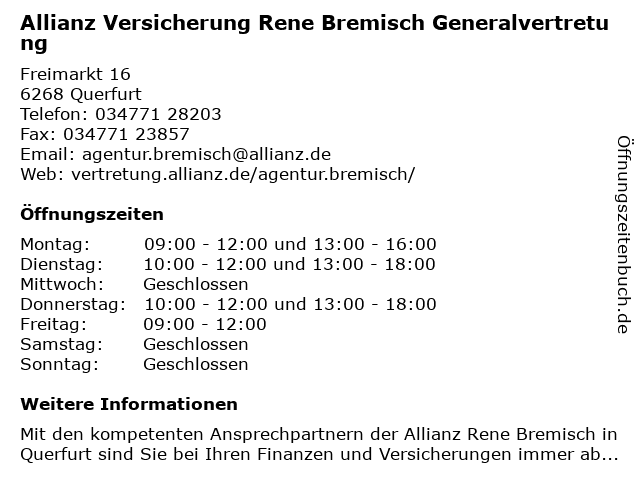 Allianz Versicherung Rene Bremisch Versicherungsagentur In Querfurt